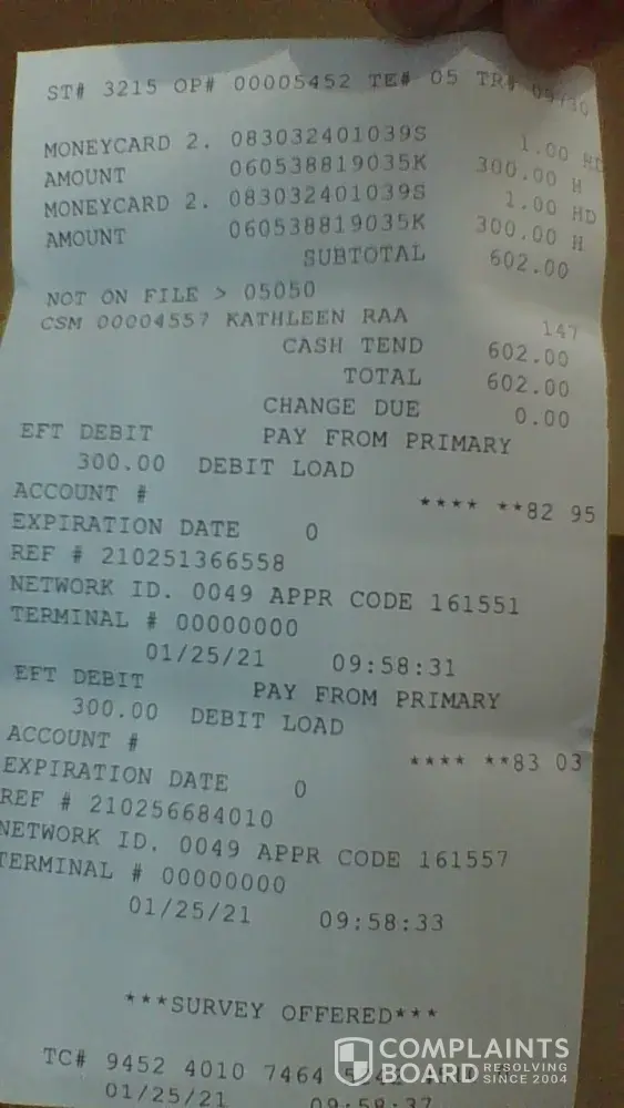 I bought two wal-mart money cards for $300 each on 01/25/2021. However, I have not been able to activate either card. I have called your company number to get this resolved but have had no luck. I am a senior citizen living on a fixed income and need my money. I called at the end of April to green-dot and the lady I spoke with supposedly filed two cases re: what happened. I heard nothing back and called again two weeks later and was told the receipt was not readable so I went to WalMart and obtained a duplicate receipt. I sent that last week through email but have still received no word on resolving this issue.