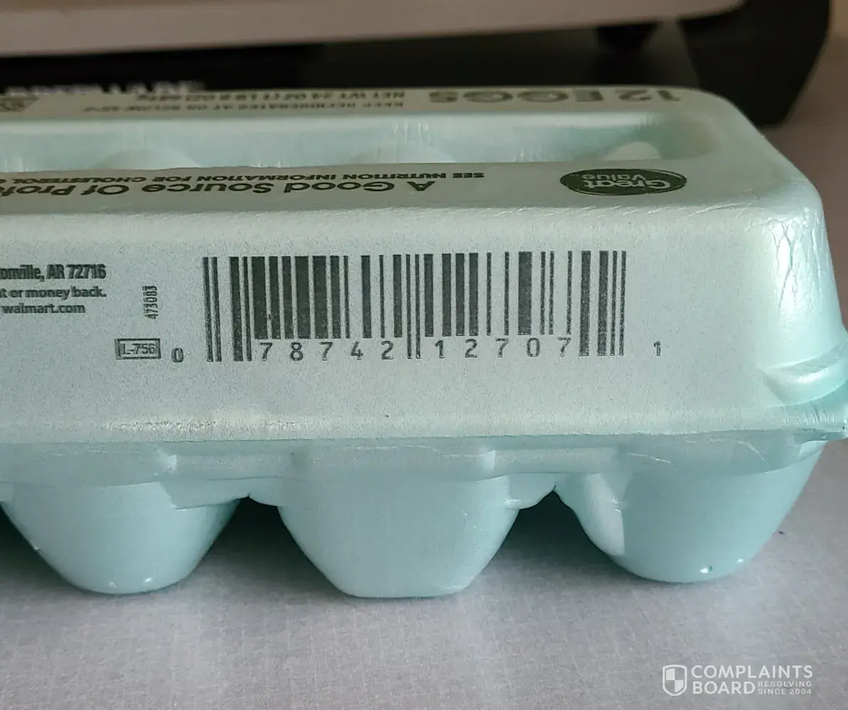 Purchased 12 "Lage White Eggs" from Walmart in Valdosta GA Feb. 8th 2021. Decided to hard-boil five of them on Feb. 9th. Three out of the five had black spots on the soft white outer part of the egg just underneath the shell after peeling. The carton says "best used after March 9". Needless to say I threw them out. I have the carton and the receipt if necessary. [protected]@aol.com