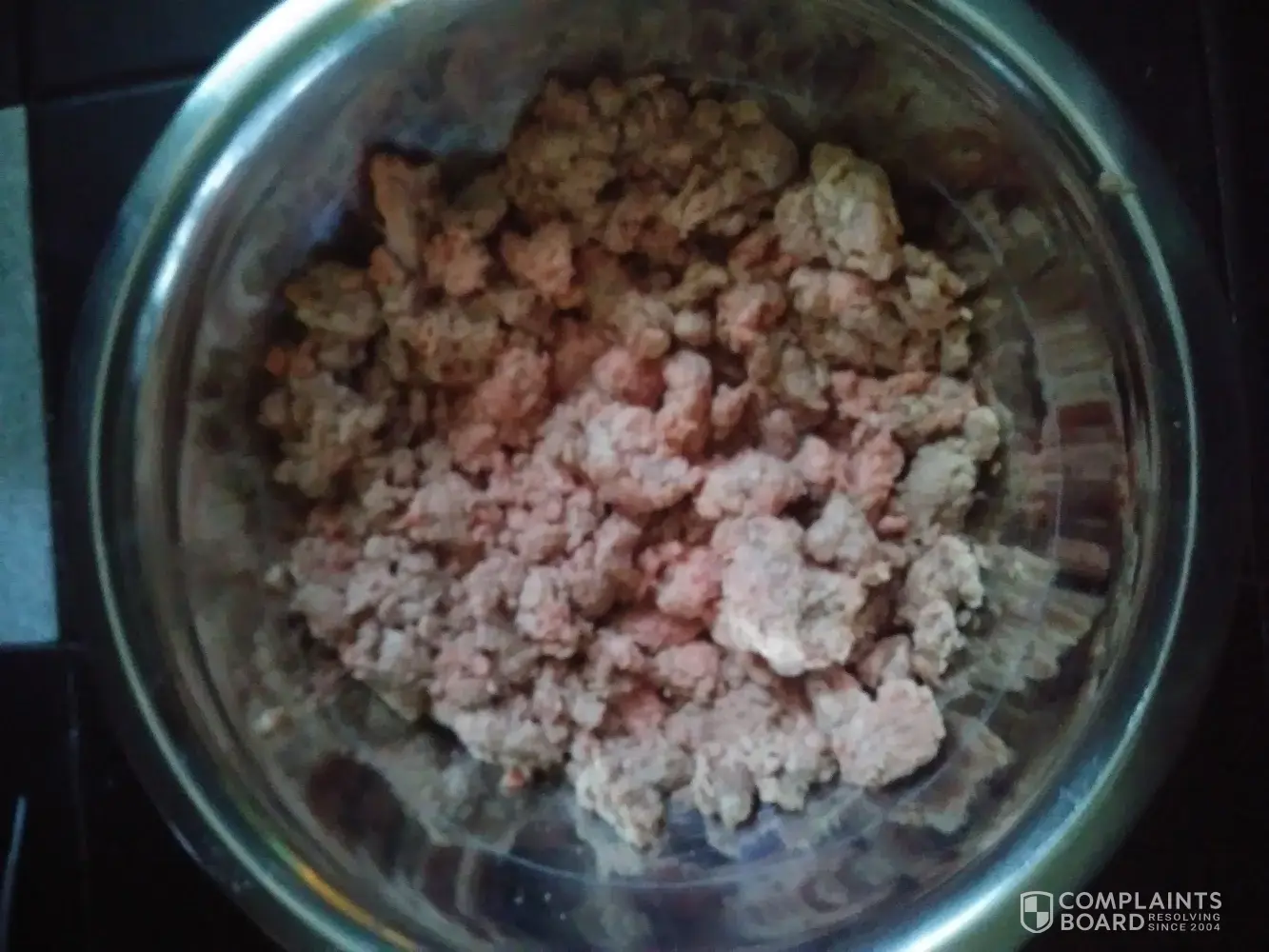 The ground beef was discolored through out! Nice fresh pink ground beef. I started separating the meat. Looks like it was rotten or older meat mixed into it. The meat is mixed with nice pink looking me and then a darker meat and then a really dark almost black gross-looking meat. My family is not going to be served this for dinner tonight. As you can see the meat isn't fit for human consumption.