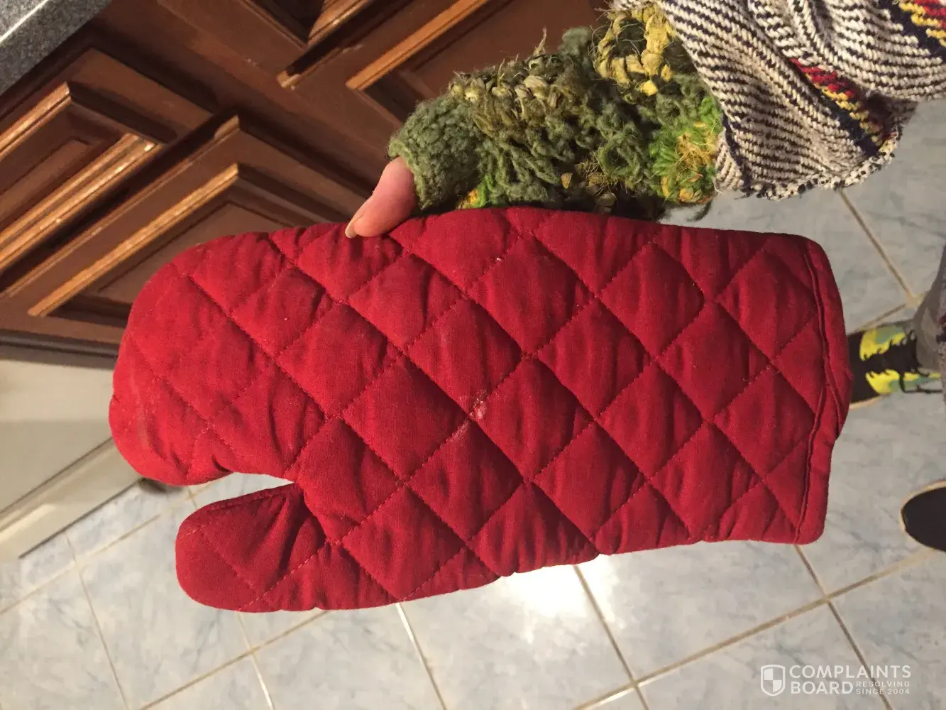 I am not sure what a solid resolution would be to this problem. The oven mitt was inexpensive, a refund would not really solve the problem of the pain of the burn as well as the ruined glass dish/my meal. I do not want another one of these products, I do not trust them to be adequate for my safety. I guess a refund would be nice in the end; however, this is a major problem and I am very upset about the pain and nuisance this has caused me.