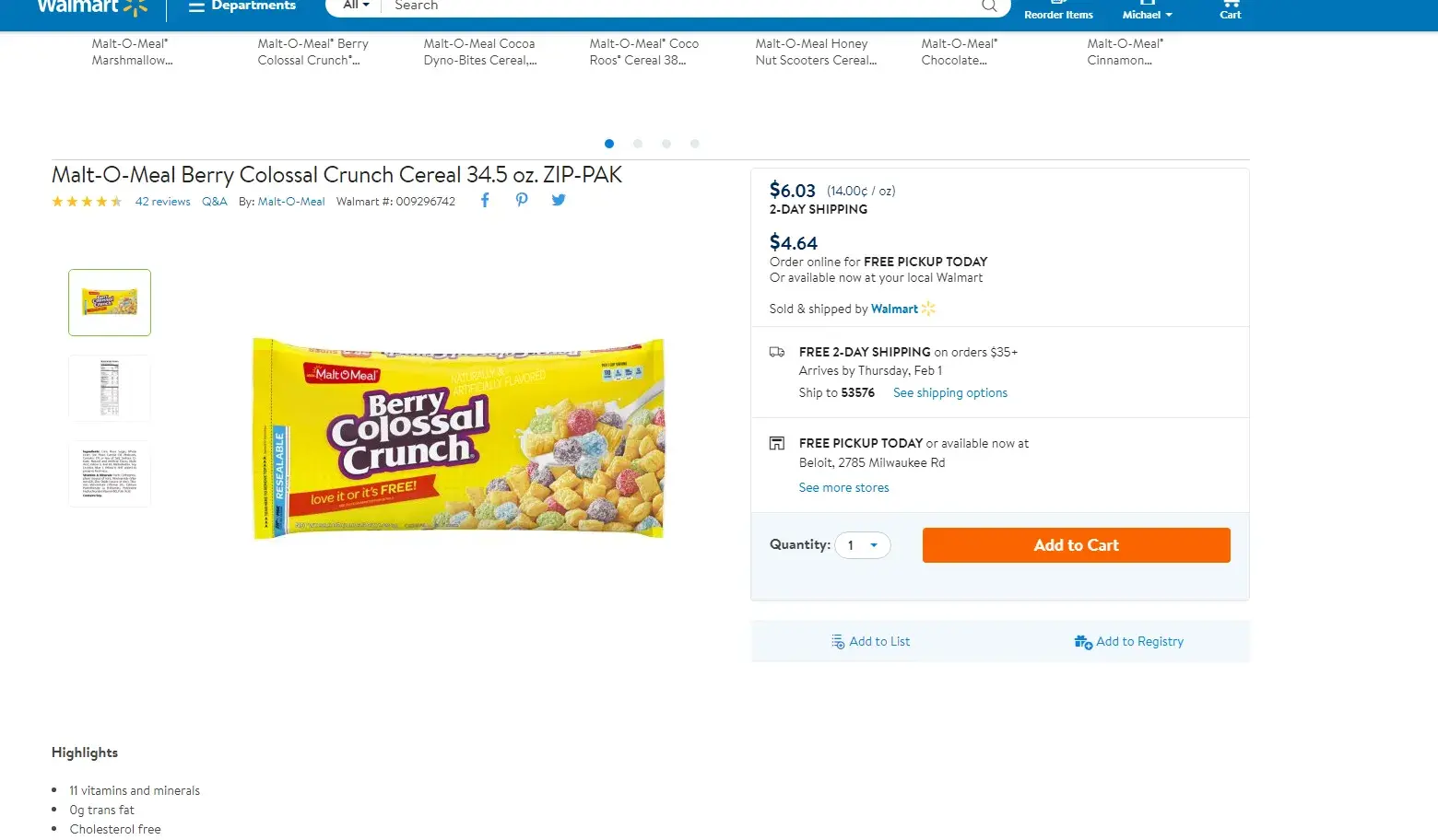 Walmart now has 2 prices 1 instore/pick up and one online. They claim this is due to different cost from the warehouse and the warehouse cost more. This added cost isn't removed when you spend $35.00 or more for free shipping. In fact, this added cost can easily be more than shipping when several items are purchased. In my opinion, this is just shipping being added in and will, in fact, cost you more than actually paying shipping cost on multiple times.