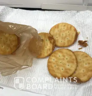 On 2/22/18 I while eating my lunch which consisted of a ritz cracker fresh stack purchased from Walmart, I notice that the crackers contained a brown subtance on the edges of each cracker. It had the appearance of peanut butter, however, I was unable to determine for sure by the smell. As a result I was unable to enjoy the remainder of my lunch. :( I have attached a picture and I am asking for a full refund or coupons to be able to purchase a Ritz product free of charge. I have attached a picture of the product as well as the barcode information. Thanks for your assistance with this matter.