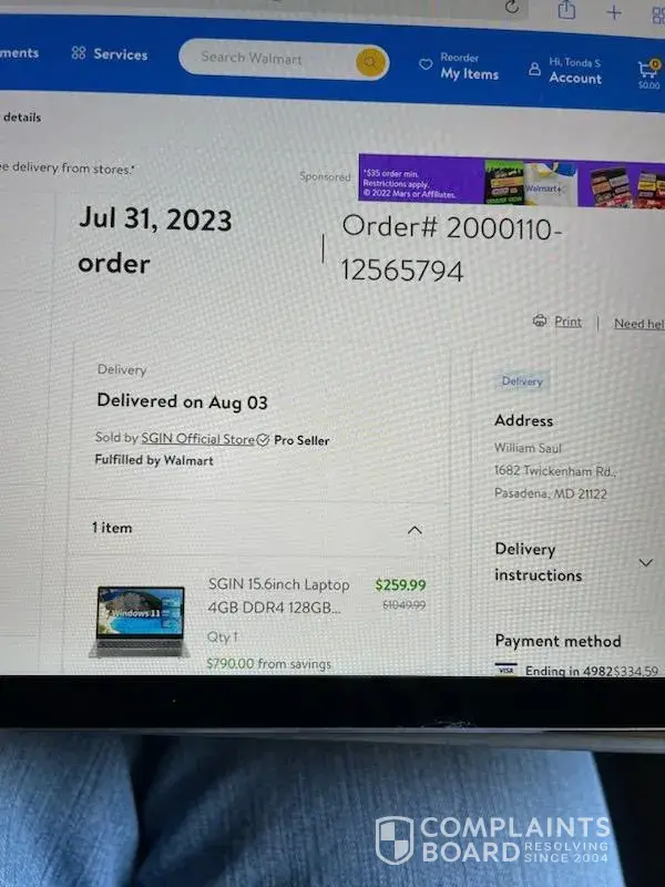 I purchased a SGIN 15’ Laptop computer from Walmart on August 3, 2023. I spent $275.59 plus 59.00 for protection plan insurance, the seller was SGIN OFFICIAL STORE. At the time I assumed that I was purchasing from Walmart. It had a 90 day return which again I thought it was Walmart return policy. I turned the computer on and it disconnected from the...