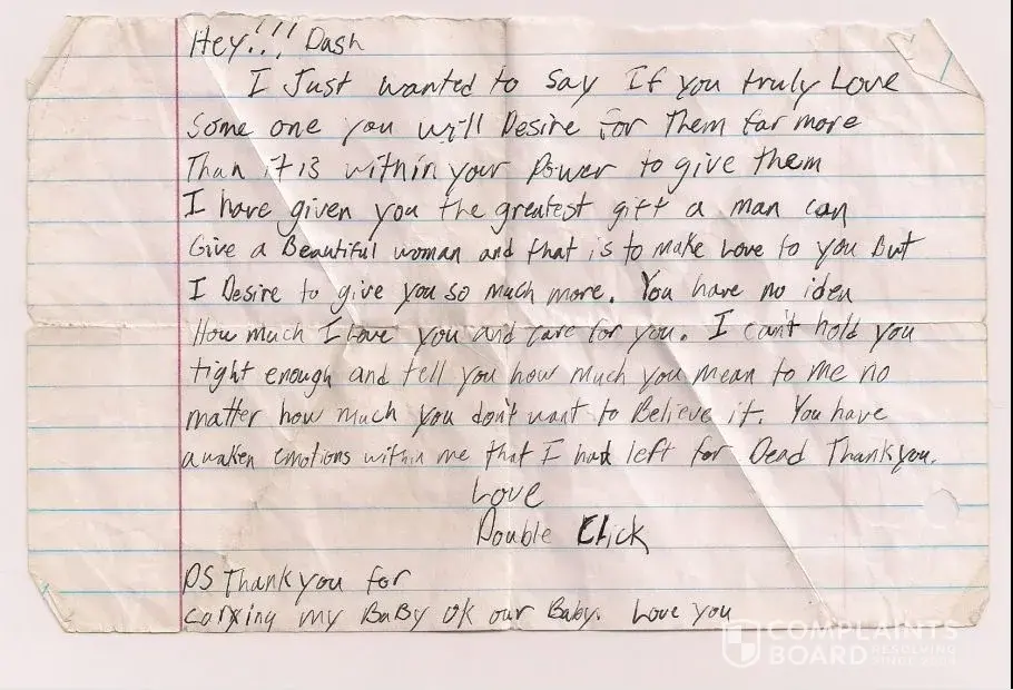 December 2005 I confronted my wife Joan Wagar with a audio recorder over that love letter Doubleclick the body double wrote my wife and she admits it's her love letter but refuses to admit to her nickname because she is trying to hide the fact she is a poisoner and that it is open knowledge at East Port Walmart, she still also is trying to hide the fact Eric Carlson is a cop and a look-a-like to me!
