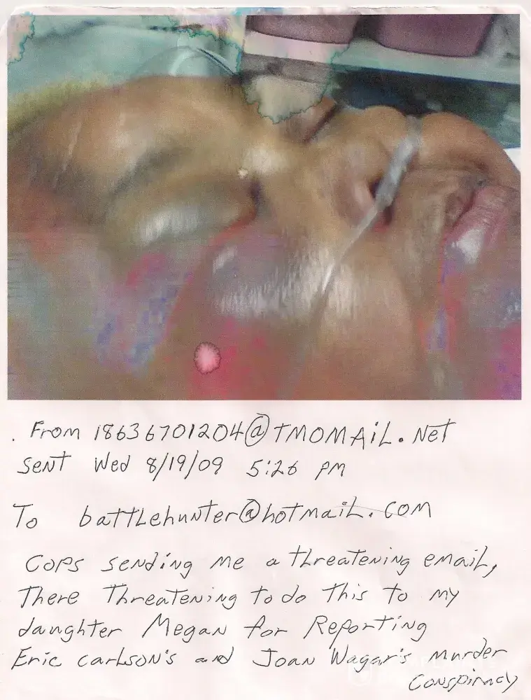 2006 A week later Joan Wagar writes her infamous denial letter denying her ongoing affair with officer Eric Carlson and denying she is a poisoner, everything in her denial letter is a lie and even her daughters were sleeping around with officer Eric Carlson and his partners, one of her daughters got pregnant at the time of Joan Wagar writing this by Eric Carlson's partner David!