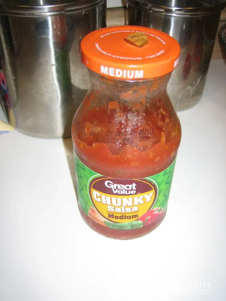 I bought a jar of Great Value salsa at my local Walmart store in November 2014 I believe. I dumped some from the jar into a small bowl to dip chips into. The salsa is a rich red color, & has chunky pieces of vegetables in it, so I did not notice the object in it right away. I scooped up some salsa on a chip, and just about chocked on a piece of WOOD, YES, A WOOD CHIP- I coughed and it went from almost down my throat to my teeth, where I tried to chew it up; I thought it was a hard piece of dried vegetable or something. I would love to know the "canning/bottling" process on this one, how does a wood chip get into salsa? I took pictures of the salsa jar, and also saved, and washed the wood chip and took pictures of it too-