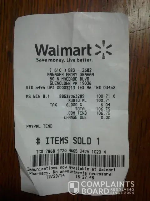 I bought Windows 8.1 from Walmart online and went to the Glenolden, PA store to pick it up. I waited 15 minutes for the woman in front of me to get what she came for until they found it. It took them a half an hour to figure out that they lost the key to the lock on the gated area it was in. I suggested and finally went to get a copy off the shelf in the electronics department. The 64bit disc would not load so, on New Years Day, I went to exchange it. I said to the girl at the counter: " I bought this online and I want to exchange it. The 64bit disc will not load. It costs twenty dollars more to get it in the store that is why I bought it online." She proceeded to scan the box and started handing me money. I asked her why because I asked to exchange it. She directed me to go and get another one. I said: " I have to go get another one and pay for it with you all over again? " She told me: " That's what we have to do. " I hobbled back to get another set of discs on a foot with a broken bone I had suffered two days prior. When I returned another employee standing at the other register (2) said she could help me. I explained that the other girl had instructed me to return with another Windows 8.1 disc set and re-pay. I then gave her the money back. Then they said it was going to cost me $126.00 after giving me back $106.00. I explained that I was given back my money and told to get another one and come back. After asking for a manager a young man came over I explained to him the situation and then he voided the refund. After he walked away, the original girl said: " I can ring you up after this lady. If you still want it, it will cost you $126.00 " I said: " No it will not. I paid $106.00 for this online and that is what I am paying back to you." She evidently ignored what I said, because after she took care of the other customer at her register she rang it up and said it would be $126.00 again. I said: " You have got to be kidding me. I paid $106.00, you gave me back $106.00, and that is all I am paying." Her reply was that I could just get my money back. I said: " I've had enough of this. I tell you what, just give me the money back. I'd rather go to Best Buy or another store and pay the extra $20 to them instead of buying anything here." And I did go to Target and get what I wanted from a helpful and very sympathetic electronics associate. Thank you TARGET!