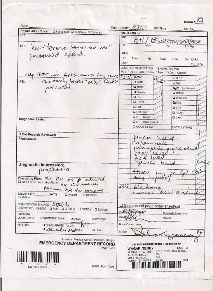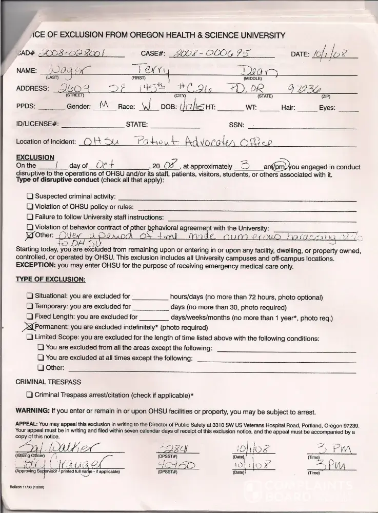 Sgt Walker of the Portland police is covering up my 911 calls and my emergency visits to the hospital and is covering up my calls to my hospital and is covering up my wife Joan Wagar's signed confessions that she is a poisoner and Sgt Walker is labeling all my calls for help as "Electronic Harassment" and is admitting in writing I am not welcome to medical treatment at my hospital and is threatening me with arrest if I should go to my hospital!