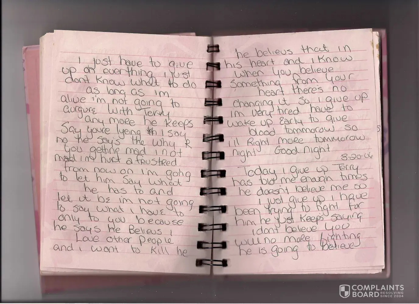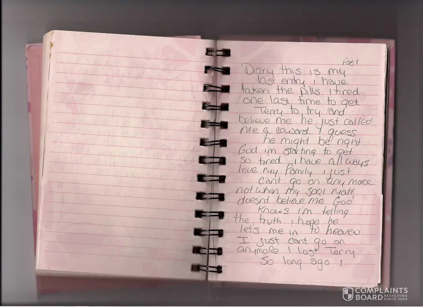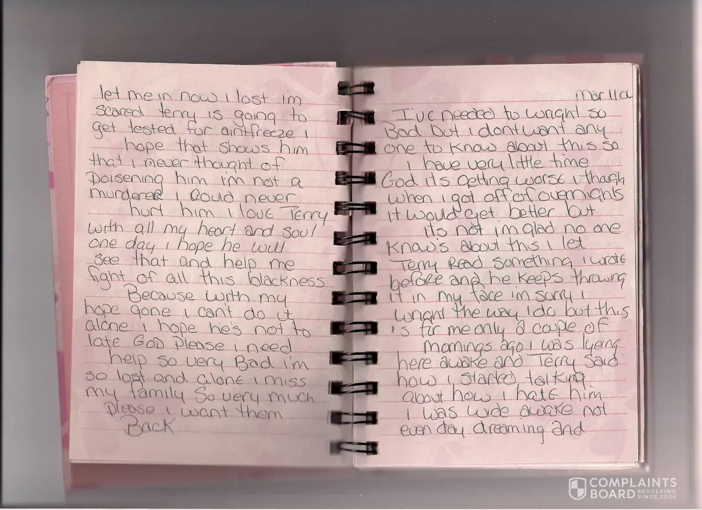My wife admitted in her same diary she is a poisoner.