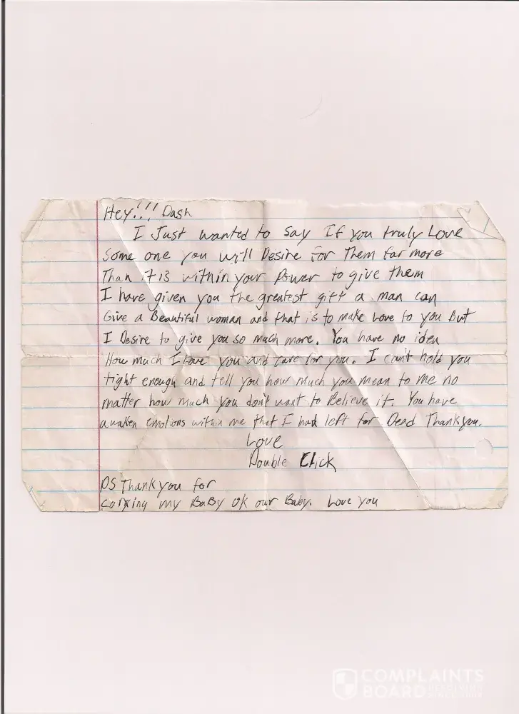 Here is officer Eric Carlson's love letter he wrote my wife back in May 2005 after my wife Joan Wagar poisoned me, they are actively using the nicknames Doubleclick and Mrs Dash in love letters and those nicknames define their affair, because officer Eric Carlson is a close look-a-like compared to me my wife and her coworkers nicknamed him Doubleclick, and after my wife poisoned me her coworkers nicknamed her Mrs Dash, and both officer Eric Carlson and my wife adopted those nicknames and actively used those nicknames in April and May of 2005!