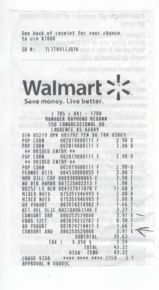 Seriously? As long as it takes to check out usually? People waiting and you want me to stand there and go over my receipt before I pay? The cashier kept coming around the counter and scanning things, I told him some of this stuff I wanted to pay for separate so he stopped, but apparently had already scanned the cheese and then scanned it again on the next batch. Too much trouble to fight the parking lot and the employees of Walmart to go back now. $3.88