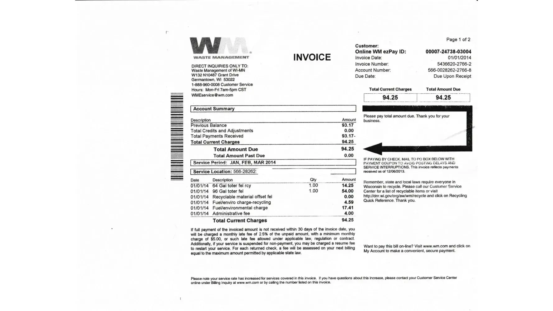 My interest was to keep WM but we have cancelled this account over a year ago because City of Reading in Penn has made this property and every property under 6 units (Attachment below) mandatory to use their trash.