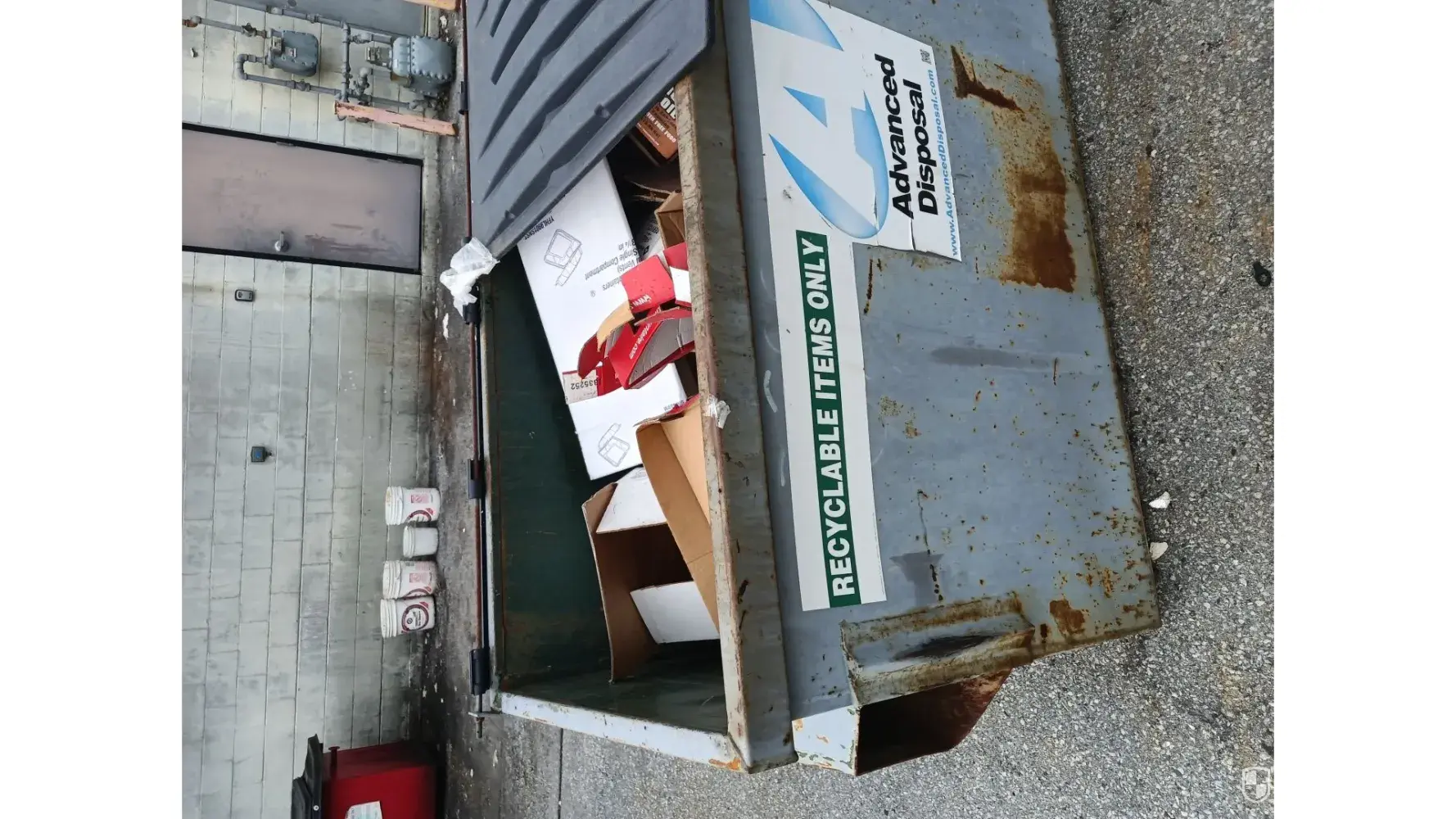 We are located in a shopping plaza at least 4 business had advanced disposal dumpsters which are now relabeled as waste management. None of the dumpsters are marked to indicate the name of the business they are associated with. I have a 2 yard recycling and a 4 yard trash dumpster side by side located behind my business. Our pick ups are WEDNESDAY (1 week trash next week recycling). On MONDAYS you pick up recycling for the beer distributer and Chinese food restaurant. The beer distributer's dumpster is in front of the build to the left side (when facing the building) at the edge of parking lot backing to a yard and trees.