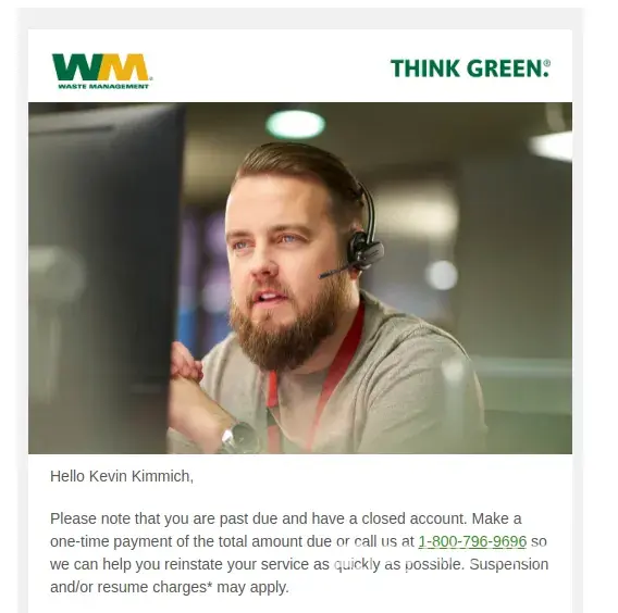 Waste Management [WM] emailswmcares@wm.com100%Confidence score: 100%Support