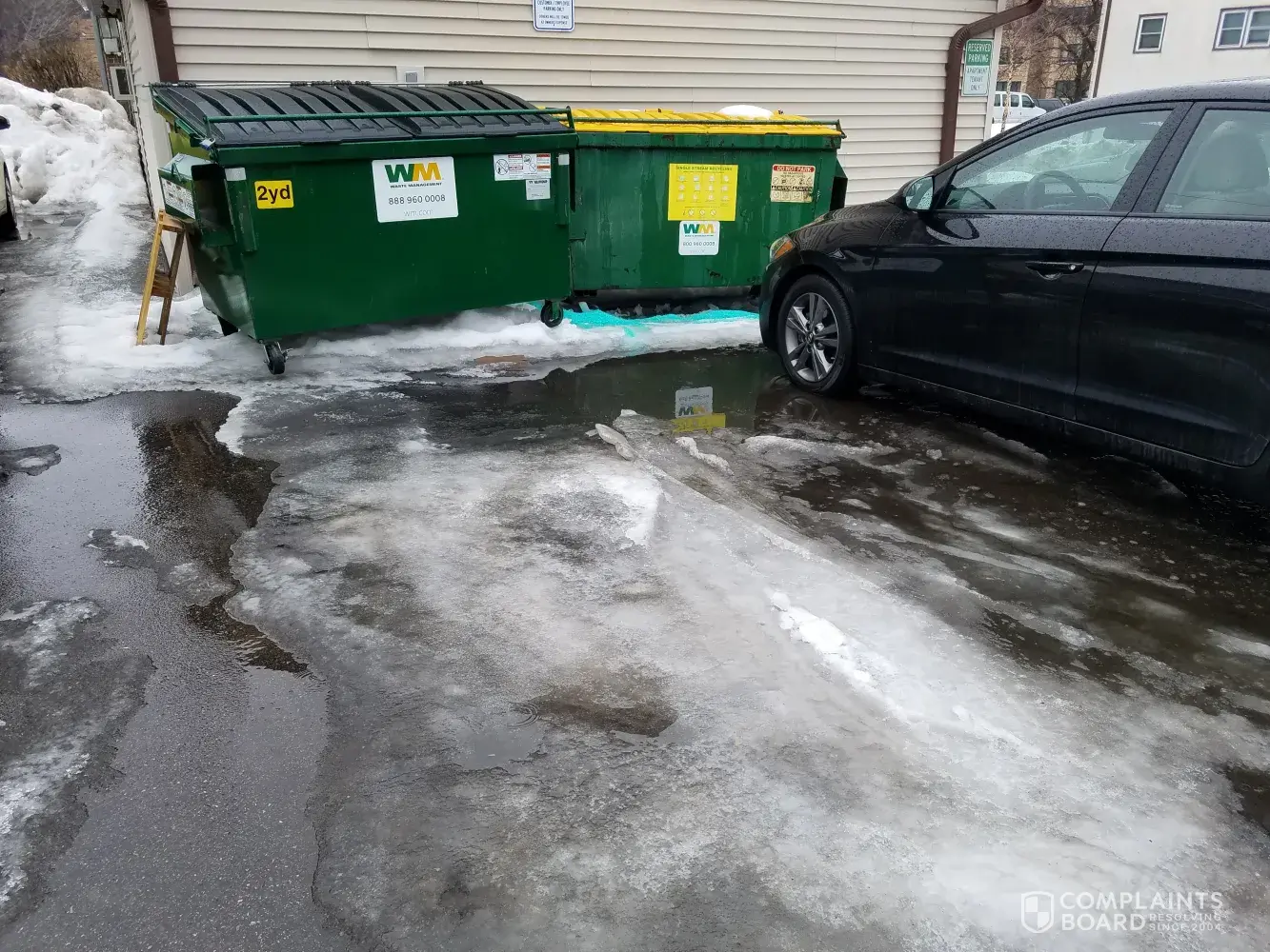 You will find multiple conversations with our previous practice manager Ali since February as well as myself over the past 2-4 weeks. Initially, we were asked to move cars and told that the driver would wait 10 minutes. We moved our cars and the driver didn't wait. That was the beginning of February. February 12 waste management took a picture and there was snow so that was understandable to not pick up. February 19 I got another picture showing that snow was in the way (less than February 12th) so we tried to shovel. We have a contract for plowing and the parking lot was efficiently plowed throughout the winter. Recently, I received a picture from the driver showing ice and he said he couldn't get to recycling. The garbage can, which is right next to recycling, was consistently picked up during this time. Recycling is every other week and garbage is every week. I spoke with the office who recommended I put salt around the recycling bin. I did. Photo enclosed.