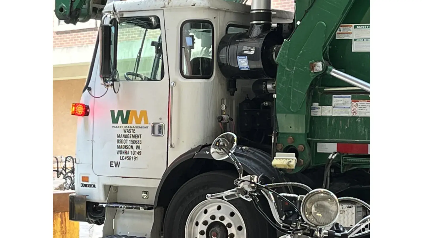 I was trying to get out of a public garage when I found a WM truck blocking its only exit. There is a wide driveway between the building at 380 W Washington Ave in Madison WI and the public parking garage behind it, and there's a small loading dock to 360 W Washington on the left side where trucks will often unload. Most trucks know to park at an angle so as to let cars out of the garage--it's fairly intuitive. This truck driver, however, decided to park right in front of the gate despite there being plenty of room for him to park at an angle. When I pulled up to the gate I saw the driver pushing a dumpster into the 360 building. I yelled, "You are blocking the exit to a public parking garage!" I know he heard me because he twitched as I said it, but chose to ignore me and pushed the dumpster inside the building. There were cars lining up behind me as I waited for him. After a few minutes, he finally came out and again I told him he was blocking the exit to a public parking garage. He did not apologize--he just said "thank you" and drove off. This is frequently a problem with WM trucks--this particular one had WDNR #10149 and LC# 58191 on its door. I have photos of the truck.