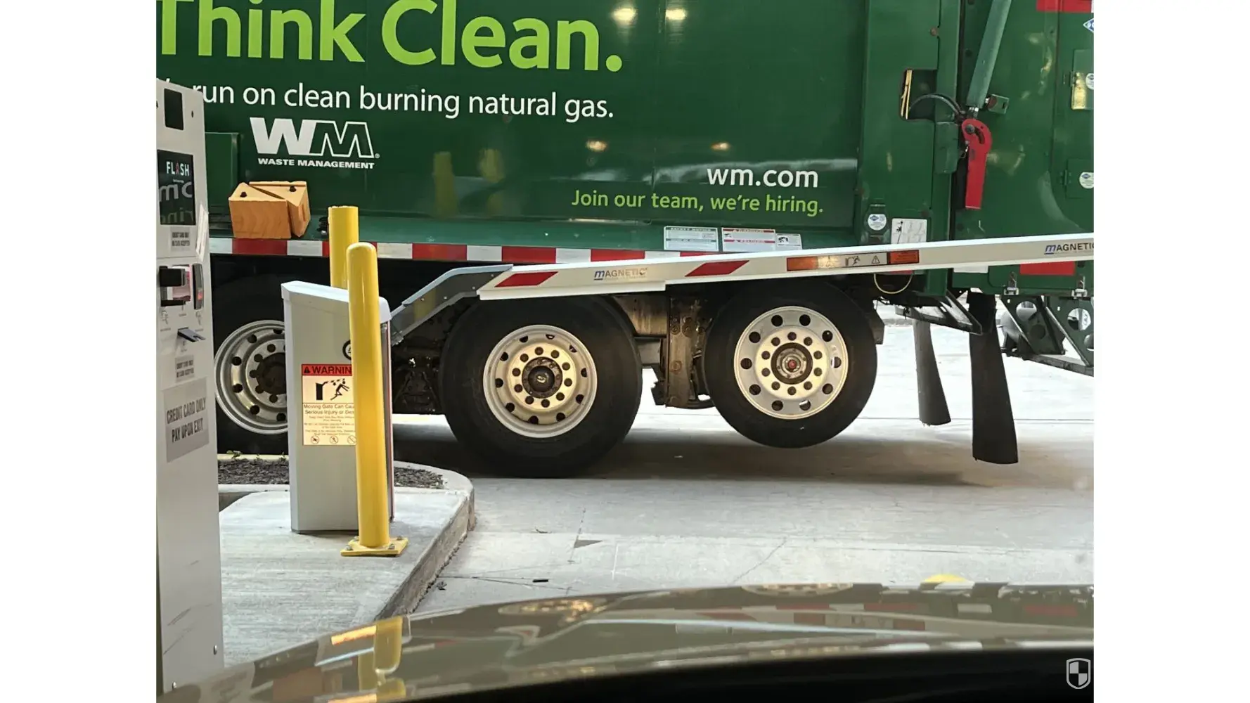 WM Truck blocking public parking garage exit