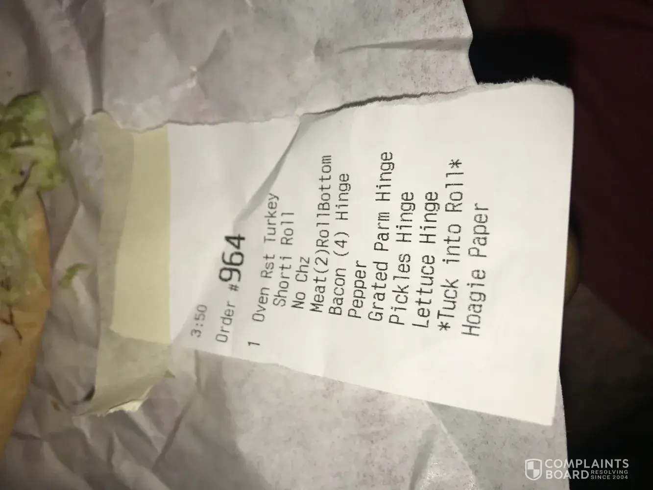Ordered a turkey hoagie with specific toppings such as pickles and bacon which I paid extra for. When I open my hoagie it was just turkey and lettuce. I have photo evidence of my slip and the messed up hoagie as well. I feel the need to complain about this because this is an everyday thing at this wawa. The greater issue is this wawa itself. The food order...