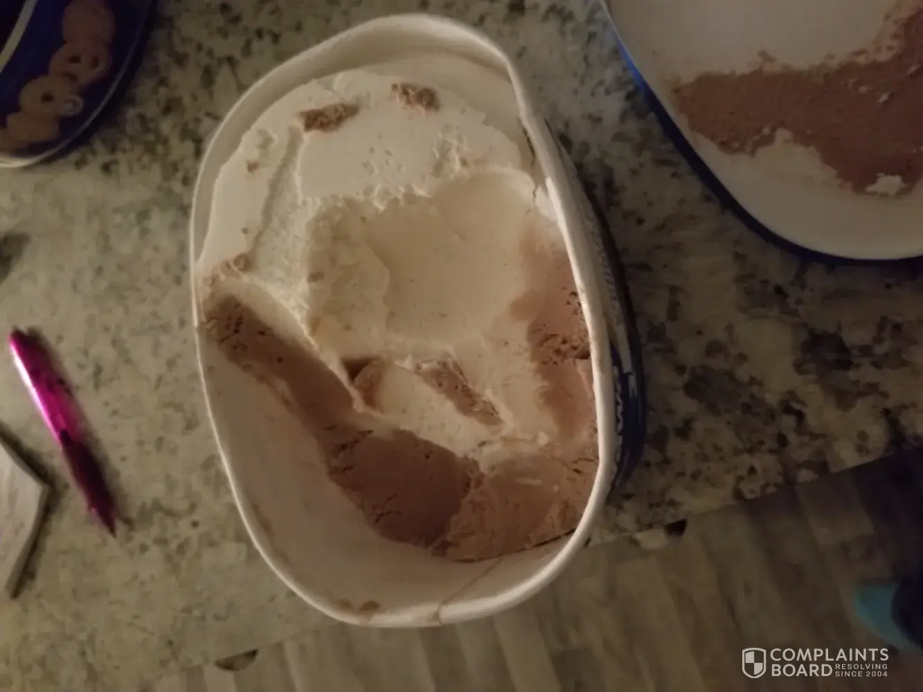 Bought a 1/2 gallon of the half vanilla half chocolate ice cream and got a quarter gallon of chocolate and 3/4 of vanilla, if you're going to say it's half and half at least make sure it close. I will never purchase your icecream ever again. In the picture I have scooped only chocolate, so I basically have one bowl of chocolate and my husband gets the rest because I don't eat vanilla.
