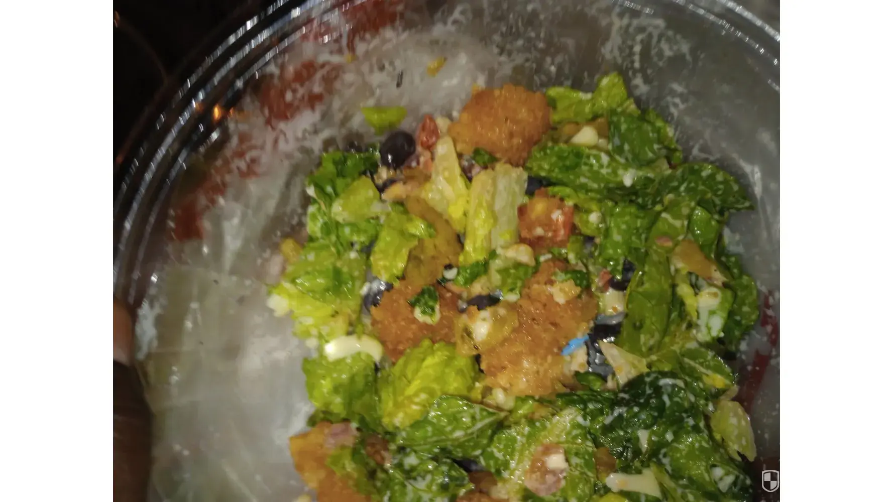 Read full complaintSouthwestern salad have a piece of glove stuffed in side the chicken strip strips