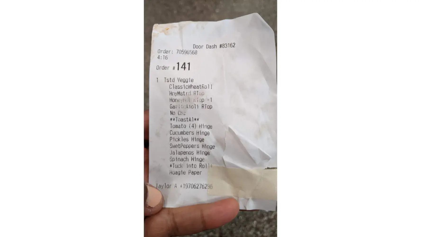 Yes, I ordered to medium subs , one smoked turkey with mayo, lettuce, onion,and sweet peppers with provolone cheese,sub was messy just thrown together, order another steak and cheese mayo,lettuce, tomato,toasted well,it was not toasted sub was cold steak tasted like it was old I paid almost 14.00 for both in cash for two nasty subs uhm.. no, wrong answer I need this resolved! Thank you.