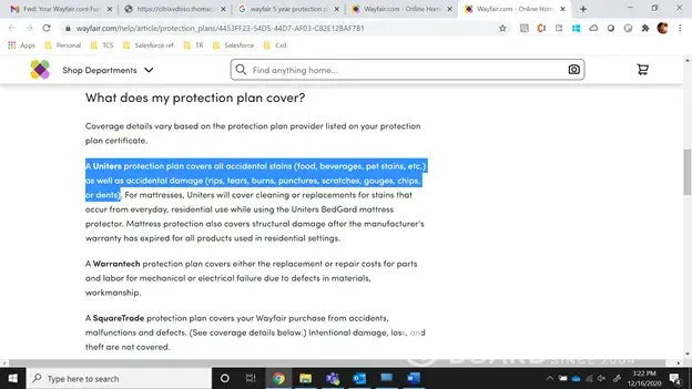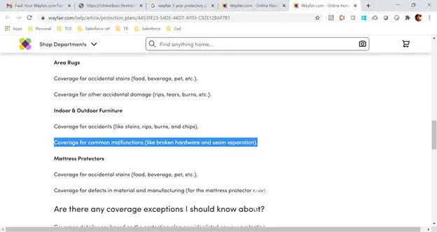 We also asked them to work their insurance Uniters for specific issue and also Wayfair miscommunciation during buying the policy.