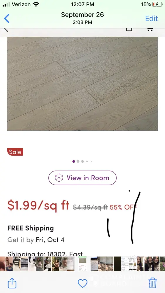 On Sept 26th 2019 I placed a sample order on wood flooring and locked in a price that was advertised for $1.99 during their flooring sale.