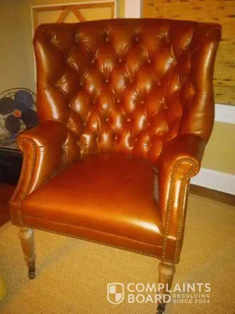 Dear Sirs, I am hoping you can help me resolve this problem with your Morford leather wingback chair that is being represented as a genuine leather. I was very suspicious when I saw it in person after it was delivered on 8/25/23. I confirmed that it was not real leather when I had a reputable company do a chemical test to prove that Nowhere on the frame...