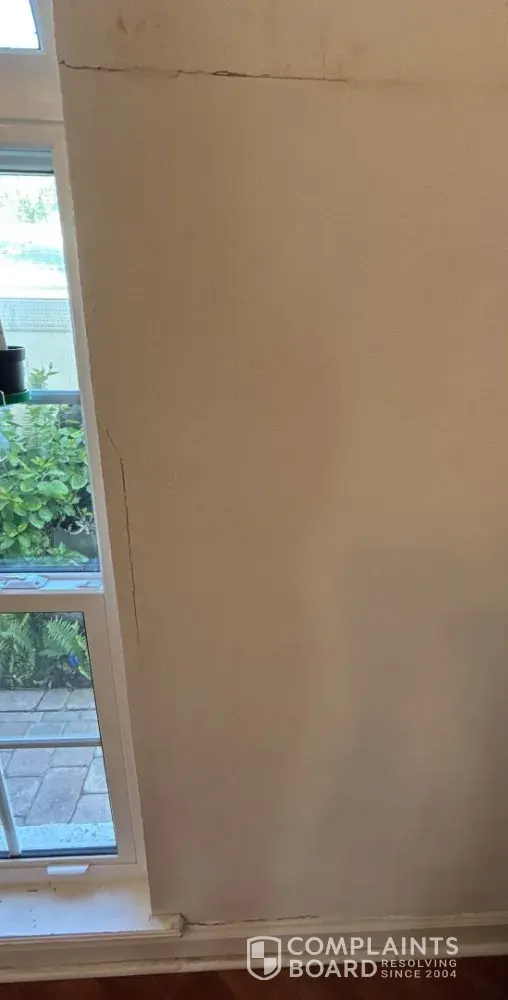 In 2021 we had a large custom hurricane impact window replaced with a smaller one and now the walls they installed around it are separating from the original wall. Due to the smaller size of the new window, the opening needed to be filled in. Instead of block (like the rest of the wall), they installed wood framing (2 ½ ft) on either side of the window. We...