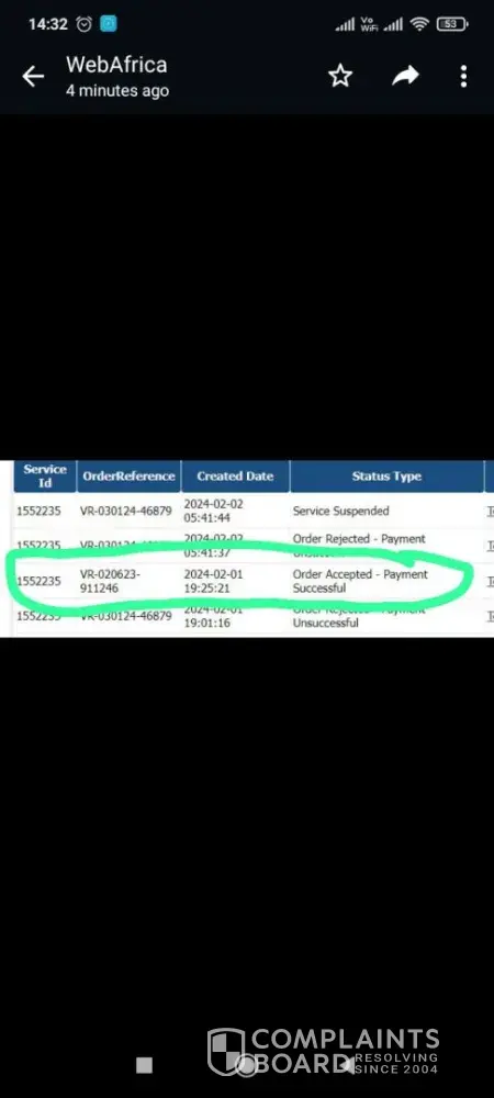 I want to emphasize that I have been a loyal customer, and I expected better treatment and prompt resolution of the issues I faced. It is both unfair and unacceptable that I should continue to pay for a service that Web Africa has failed to provide as per our agreement.