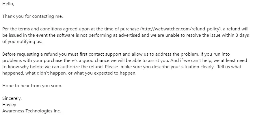 webwatcher refund