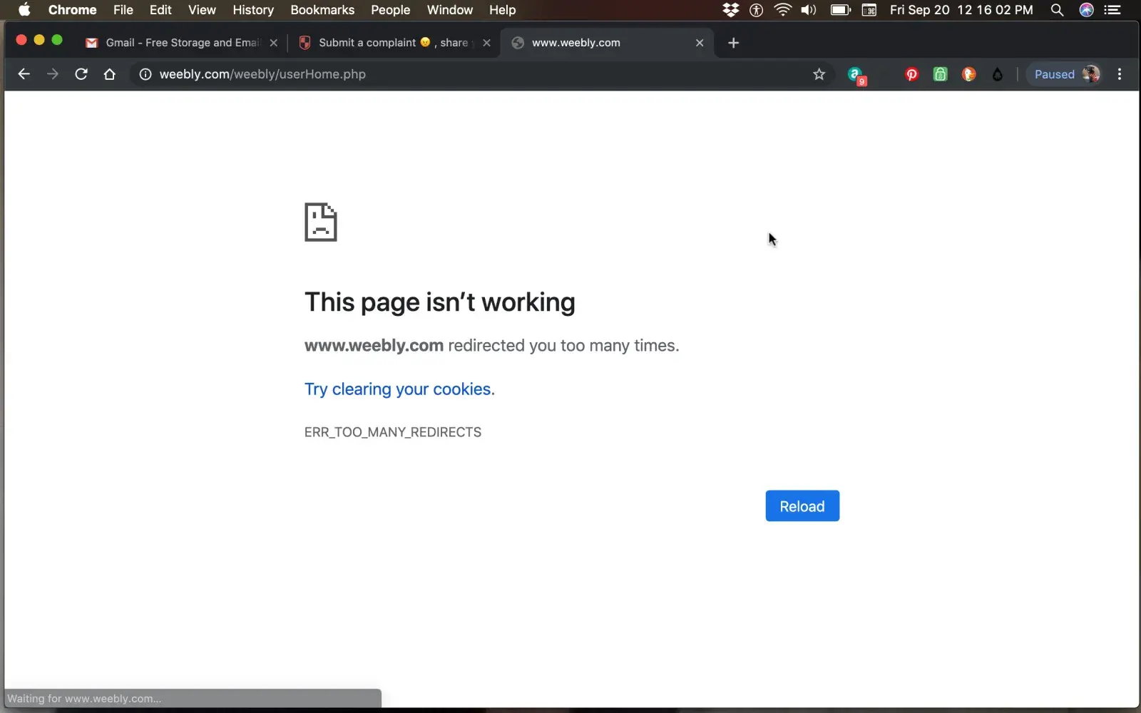 I've been constantly getting this message from Weebly: This page isn't workingwww.weebly.com redirected you too many times.