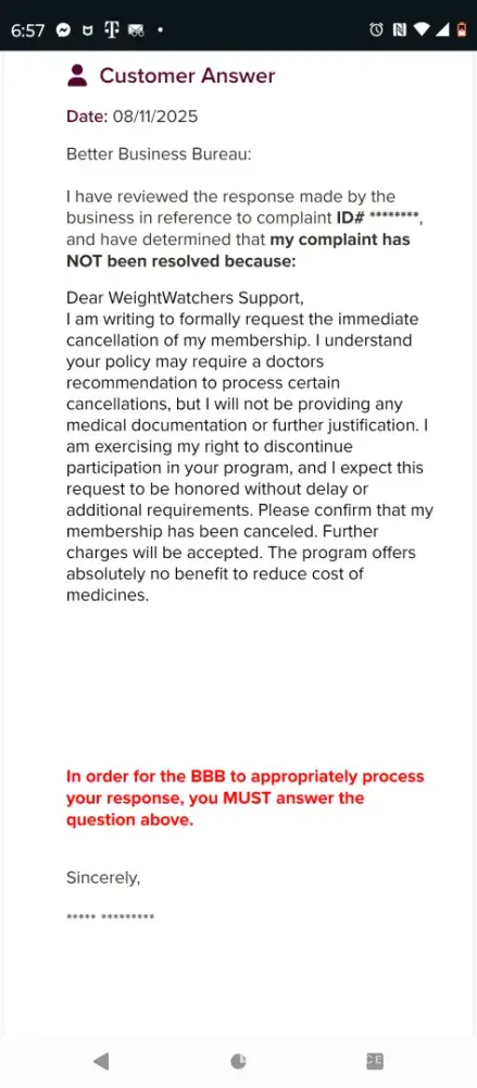 Tracy Mihajic 520 9th st south Golden BC V0A 1HO [protected] Weight Watchers Canada Subject: Unauthorized Charges and Request for Immediate Resolution Dear Weight Watchers Canada, I am writing to address a matter of grave concern regarding unauthorized charges that have been debited from my PayPal account by your organization. Upon reviewing...