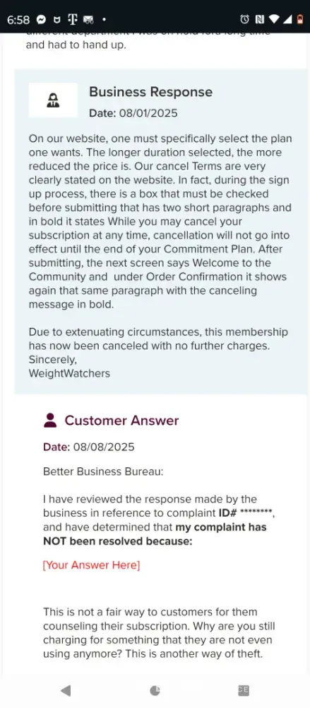 Weight Watchers International WW cancellation failure