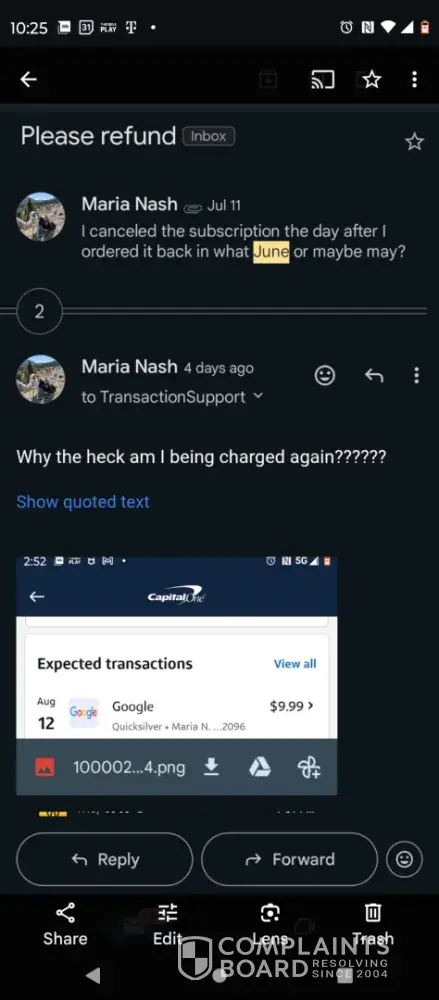 Verified customer This complaint was posted by a verified customer. Learn more