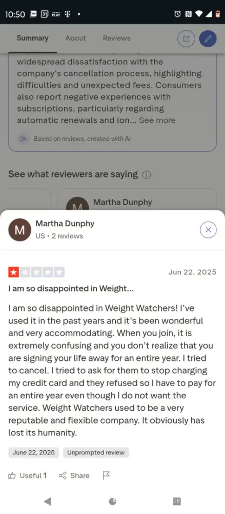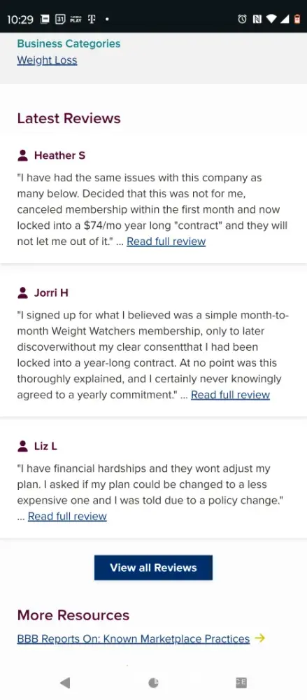 • We conducted a search on social media and found several negative reviews related to Weight Watchers International. These reviews may indicate issues with the company's products, services, or customer support. It is important to thoroughly research the company and its offerings before making any purchases to avoid any potential risks.