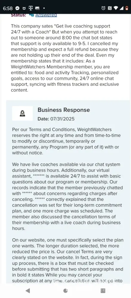 I have been a loyal weight watchers customer for the last 28 years, taking a few years off here and there. I feel Weight Watchers has become highly disreputable as to their customer service and customer problem resolutions.