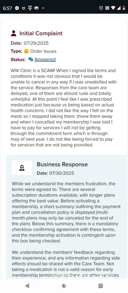 I have been a member of ww for almost 2 years, and I was curious about the gpl1 I went to the program inform and ended up enrolling 1/27/2026. I did not realize you had to stay for 1 year I went to my local dr and was telling her about it and she was very adamant that I should not do any gpl1 because of my medical history. I tried to cancel and go back to...
