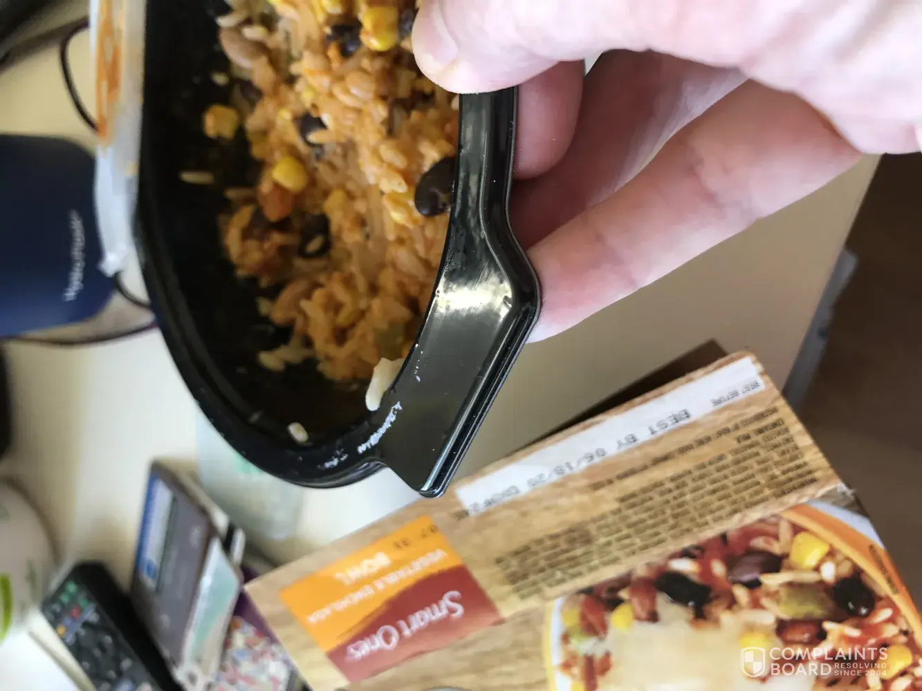 Mostly rice with a few beans and corn thrown in. If I ate this I'd be eating about a half cup of white rice void of any nutritional value the box (pictured) shows the opposite of what is in it. It is literally a bit more than a half cup of food.