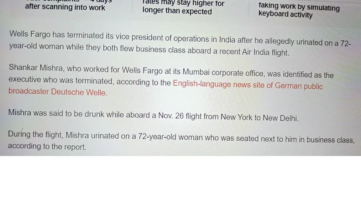 Wells Fargo VP fired, arrested for allegedly urinating on woman on flight (Washington Post)
