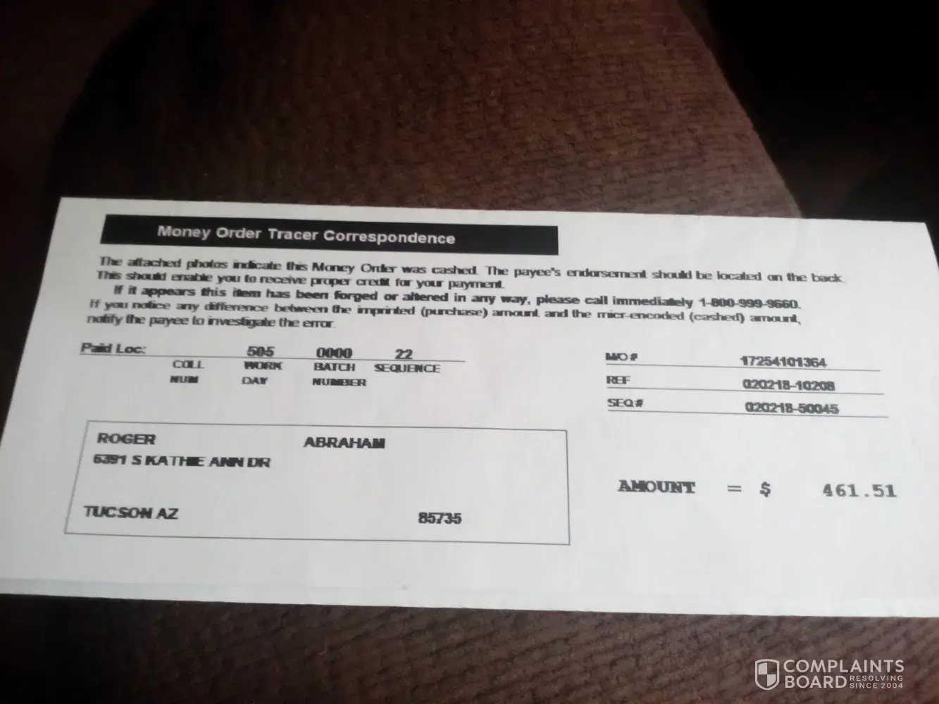 I would like to know why it is taking so long to get back our money from a money order that your business cashed in December 12 2017. The money order was for my mortgage payment and was stolen from a USPS outside mailbox and a name forged over our mortgage company name. It has put us in a bind because we are having to wait for almost a year for you to decide to send us our money back that was taken under guestionable circumstances. Western Union has told us that it would take between 90 to 120 days to hear something. It has been at least that long and we are becoming very frustrated and would like to have the process speed up so we can get our money back