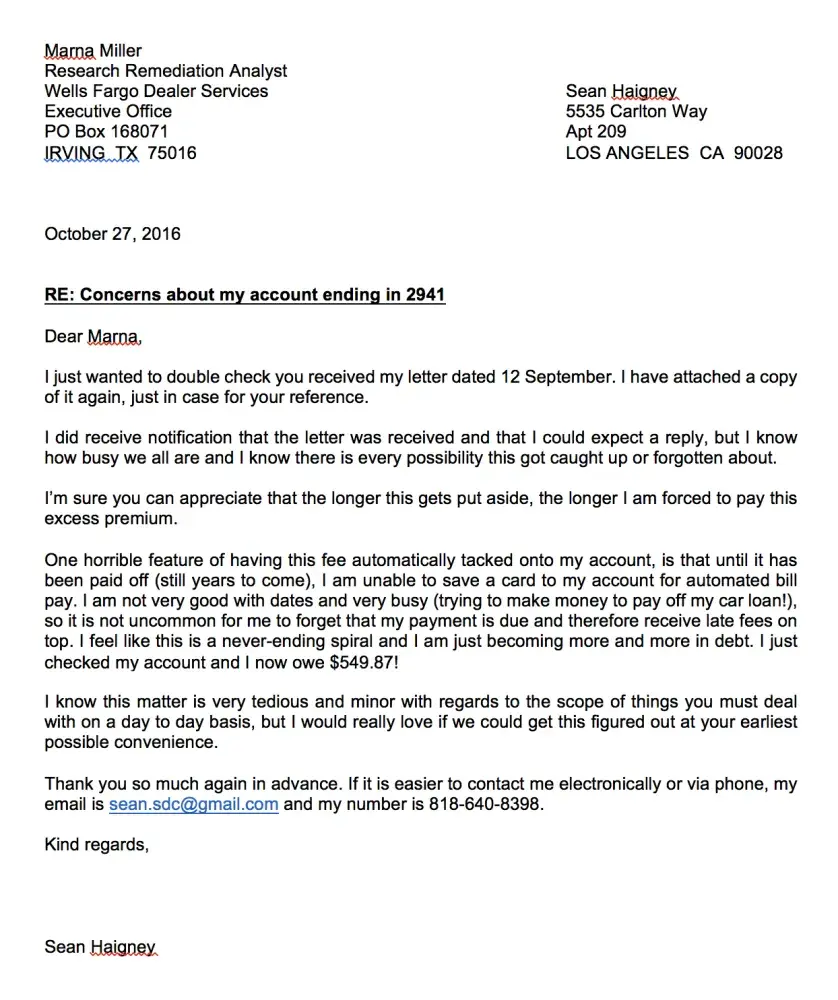 I think what might have happened is that wells fargo dealer services has my address from 7 years ago when I first purchased the car and the correspondence was going there.