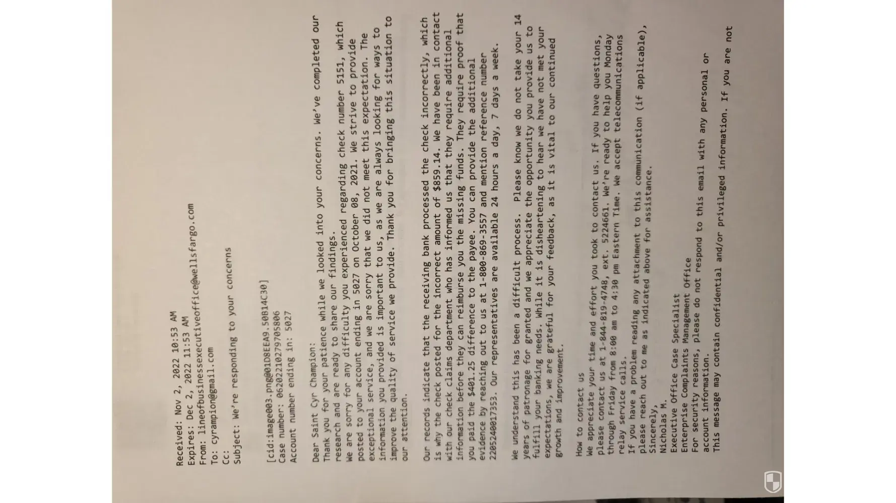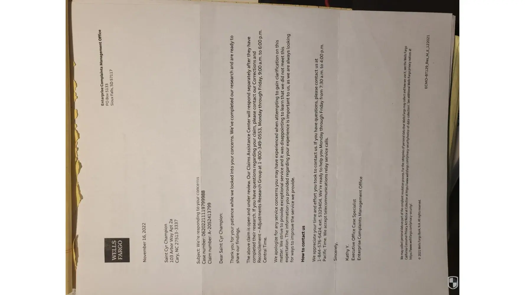 I recently went to talk to the Wells fargo banker to call their customer service line for me. As a result, I receive a letter telling me there was no fraud all is good with the transaction. What a crap! Every time you talk to a representative, you never know what will happen next. Each one comes with a different scenario. They told me way before, they were waiting on the Apartment bank (First National Bank) to answer to them, before returning my money. Then, another person said, to prove that I paid the apartment for them to give me back the balance. Even though I thought it was ridiculous, I still went ahead and fax the documents as requested. Then nothing. When I called again, another customer service brought to another reality. The agent was having hard time understanding what was going on and so on. The last move I did was to go to see the agent.