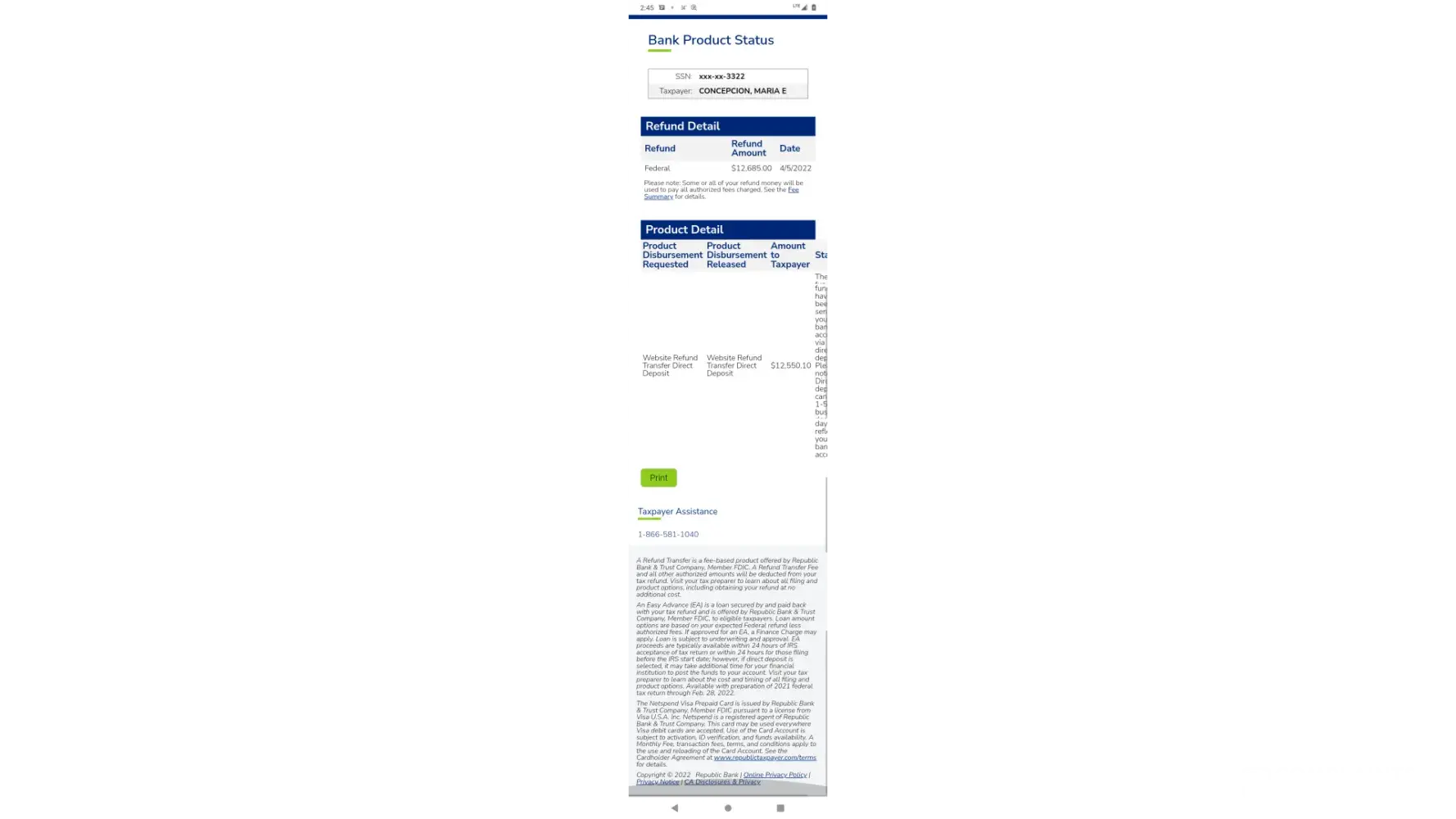 Desired outcome: Please refund me my 12,550.10