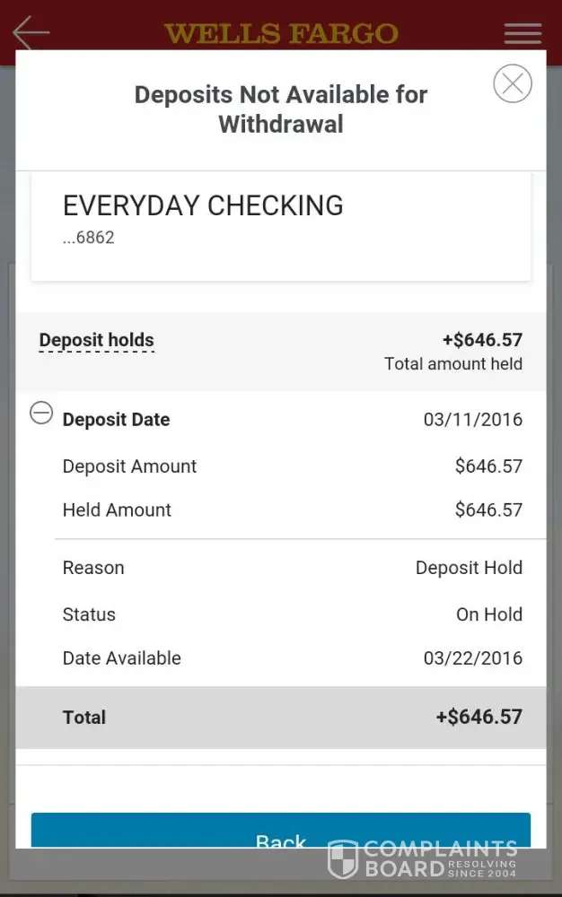 Ok after reading all of these post I have to comment as well. A 10 day hold...it's a 7 day hold now and no longer. There are laws to protect consumers and this is one of them. No longer are you to put a long hold on a check that goes into your checking account. Now if you put your check into a savings account there are no rules. You can put a hold on any check that goes into it. As for putting a hold on your wages thats ridiculous. I've worked at a small town bank for 7 years now. We are allowed to put holds on brand new checking accounts within the first 30 days. After those first 30 days we still try to make sure we'll be able to collect those funds but unless there is a legal reason for us to hold it we're unable to put a hold on it. If you do have a large check to deposit banks can put a hold on it but must give you availability of $5000. As for payroll checks the same goes for the first 30 days. We can place a hold on it. After that time period your check is to be available to you the next banking day. Now if we do start to have problems with your payroll checks coming back we can place a hold on them but then it is only a 7 day hold. Let me explain real fast that in the banking world 7 day is 7 business days. Weekends are not counted nor are holidays. Now as for debits coming out before credits. I work in Virgina and the new law is all deposits are to go in first and then debits. The smallest to the largest. We are also only allowed to charge you 5 overdraft fees per day. I wish everyone would realize that the Big Corporate Banks are not here to help you they are here to make money and nothing more. The bank I work for is a small town bank. We've been around for over 80 years and have never been bought out. When all the big Corp Banks got the buy out to get them out of the trouble they caused themselves our bank didn't take any of it. So, when it comes time for anyone to look for a different bank other then Wells Fargo please think of your small town community bank in your area .