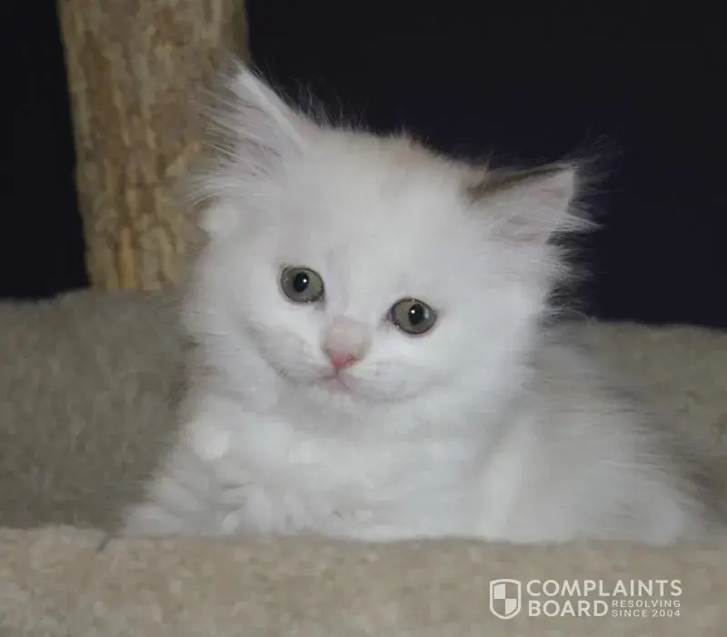 I purchased my Oliver and received him in March. He was delivered to me sneezing and congested. I took him to my vet and they did a blood upper respiratory PCR test. It came back that he had feline herpes virus and a bacterial infection, He was on antibiotics for six weeks. I thought the infection cleared up because he was feeling better. Long story short, he passed away yesterday at 8 months old! This woman needs to be stopped! She knew he was sick and didn't care! Because of her I lost my baby and am in agony! How do I go about stopping her from running this kitten mill. I asked for a replacement kitten and they said I could get a discounted kitten or adult retired cat and I would have to pay for shipping of the new cat! WTF! I just want my money back to put towards another cat. She needs to pay for what she has done to these helpless, innocent kittens and the owners who loved them.