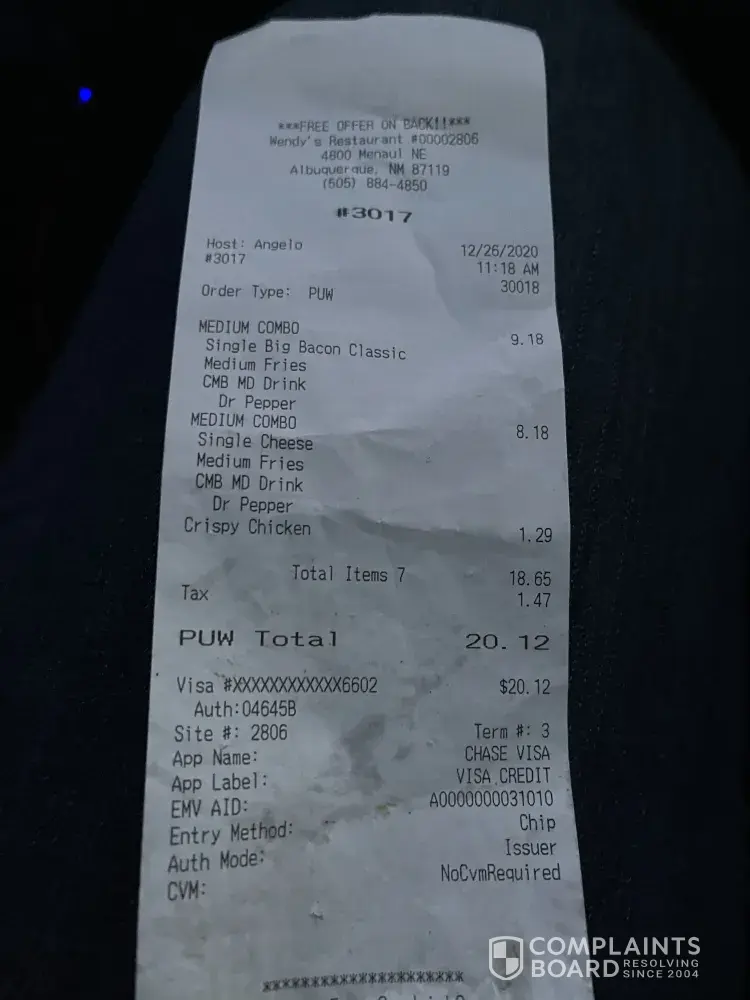 Wendy’s Charged twice