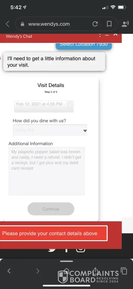 Wendy’s Complaints Page 35 of 88
