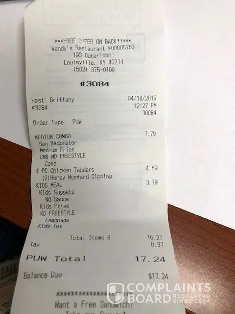 Read full complaintdrive thru employee