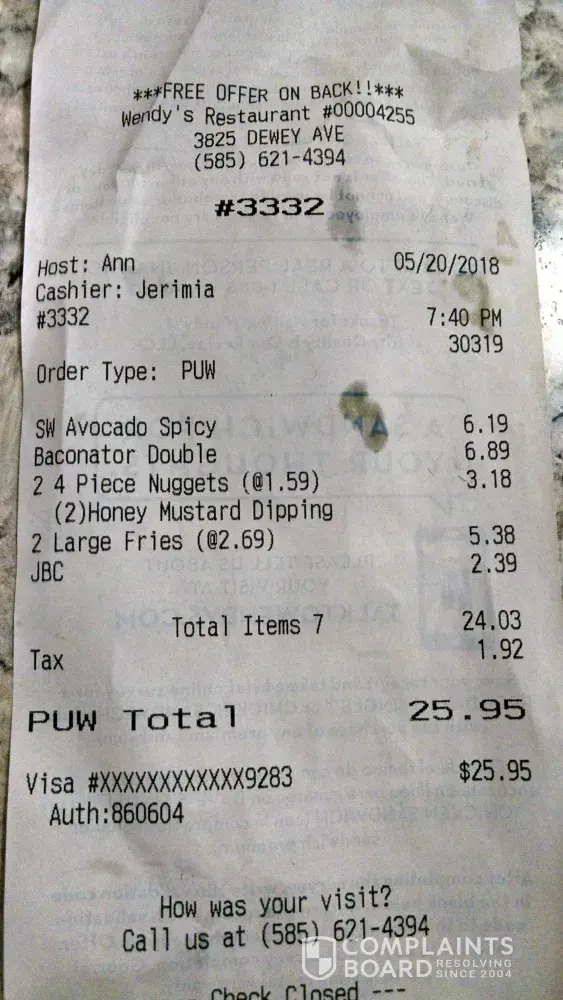 I ordered and was charged for a double baconator and when I got home I had a larger cheeseburger thith pickles and onions, I understand they are busy at times but that's no excuse for a bad order it's written won how many screens. Anyways I'm not happy at all with the service and most likely not going back. 25 dollars isn't alot but it is to some people and we deserve better management on these children making our food also put some damn napkins in the day already.